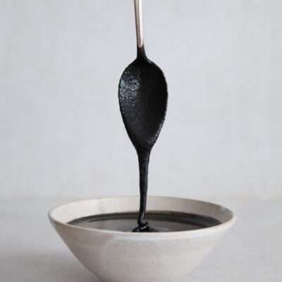 Once the seeds have broken down into a paste, add the sesame oil along with 1/4 tsp salt and blend until smooth. Again, you might need to scrape down the sides once or twice to ensure even blending, but this part usually only takes a minute or two. Pour the black tahini into a jar and store in the fridge. It will keep pretty much indefinitely.