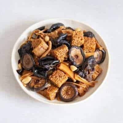 It is also the name of an aromatic braised Shanghainese dish, in which the wheat gluten takes centre stage. Together with shiitake mushrooms, cloud ear mushrooms, lily flowers (the unopened flowers of the lily plant) and peanuts, it creates a traditionally vegan meal with an exciting diversity of textural elements that soak up all of the aromas from the sweet and salty braising liquid.