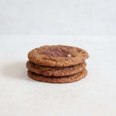 You’ll have a batch of dough ready in under 15 minutes. So as long as you have the ingredients on hand, there will be little holding you back. They are vegan, flavour-boosted with coffee, miso and dark chocolate, and perfectly chewy.