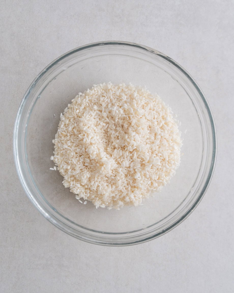 Soak the Ingredients. The day before, add both types of rice to a bowl and wash in plenty of fresh water. Drain and repeat two more times, then soak in fresh water for 3–4 hours.