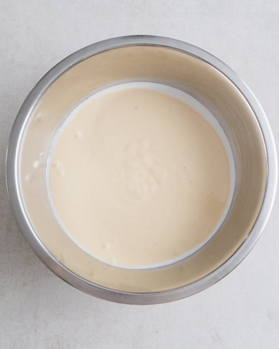 Ferment the Batter. Mix well with your hands to kick off the fermentation. Cover the bowl with a plate and leave to ferment for 8–24 hours in a warm place (such as the oven with just the light switched on). The fermented batter should have risen in volume and smell tangy.
