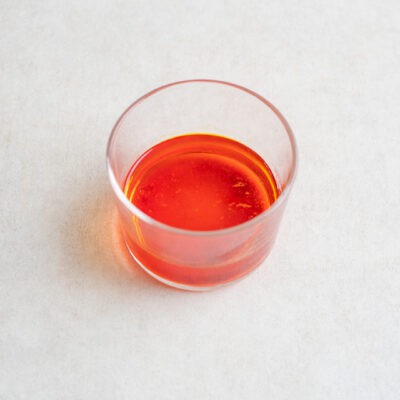 Add the ice cube to a bowl or glass and sprinkle the ground saffron directly on top. Then leave the ice to melt at room temperature (around 1 hour) or for how much time you have available. Once melted, the water will have infused into a dark, vibrant red from the saffron and you can use it in dishes like this tahdig-inspired crispy saffron rice.