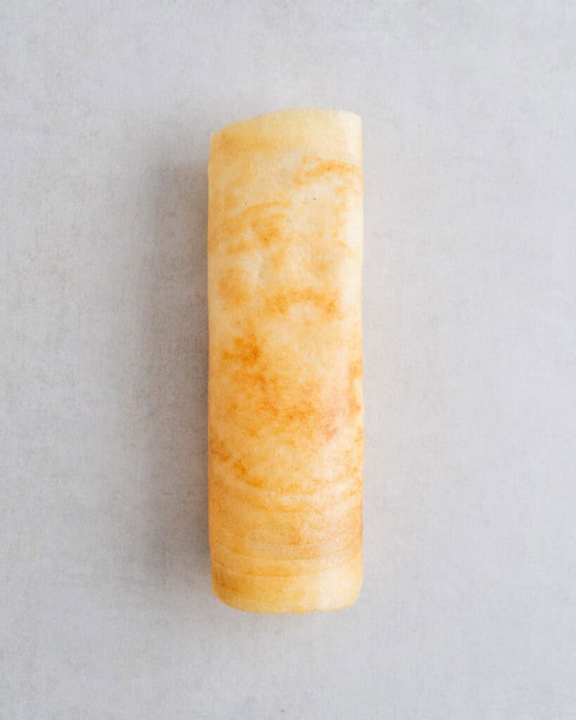 - Pre-heat a heavy-bottomed frying pan over medium-high heat. Then roll the prepared dough out until it is around 16-18cm wide and 3-4mm thick. Reduce the heat to medium and bake the chapati on one side until bubbles appear on the surface and it has light golden spots underneath when you lift it. Flip it around and brush 1/2 teaspoon of oil over the surface. Then flip again and brush the other side with oil as well. Continue baking for 1-2 minutes, flipping every now and then, until it has dark golden spots all over. Transfer to a plate and cover with a clean tea towel to keep warm and soft, then continue with the rest.